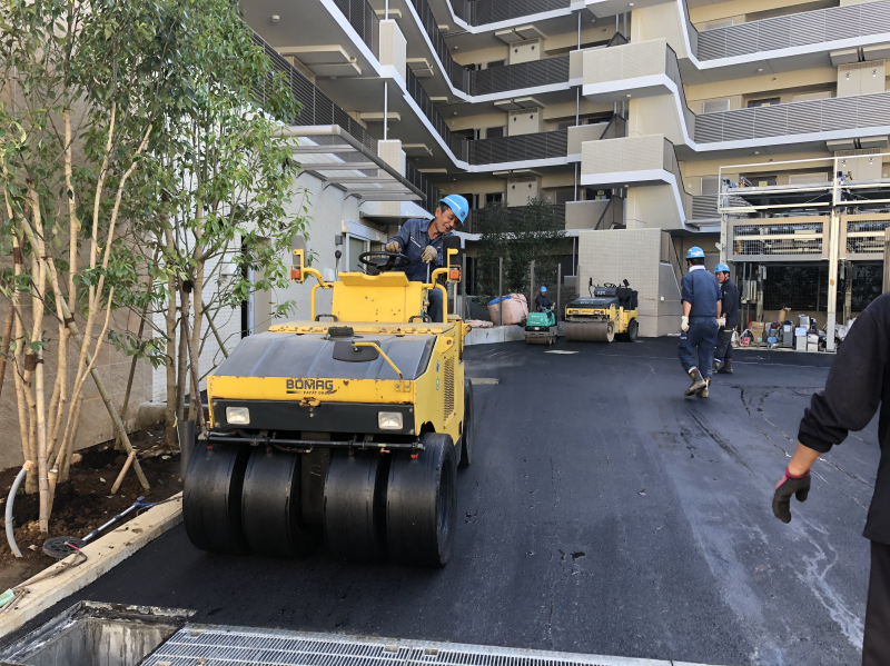 弊社が舗装する場所は様々、道路は勿論の事、ビルやマンション、商業施設敷地内のアスファルト舗装(駐車場や場内の道路)を舗装工事しております。